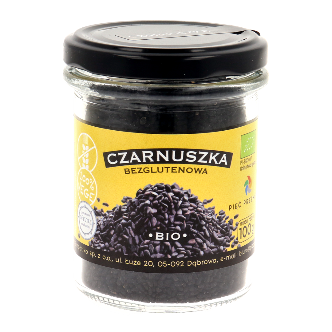 Składniki: nasiona czarnuszki z upraw ekologicznych 100%. Kraj pochodzenia: Indie.