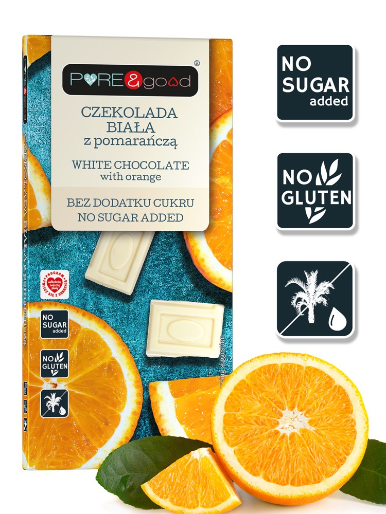 Czekolada biała z pomarańczą bez dodatku cukru 75 g – Pure&Good