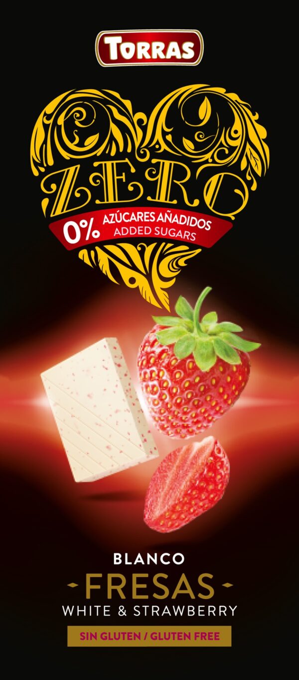 Czekolada biała z truskawkami bez dodatku cukru.