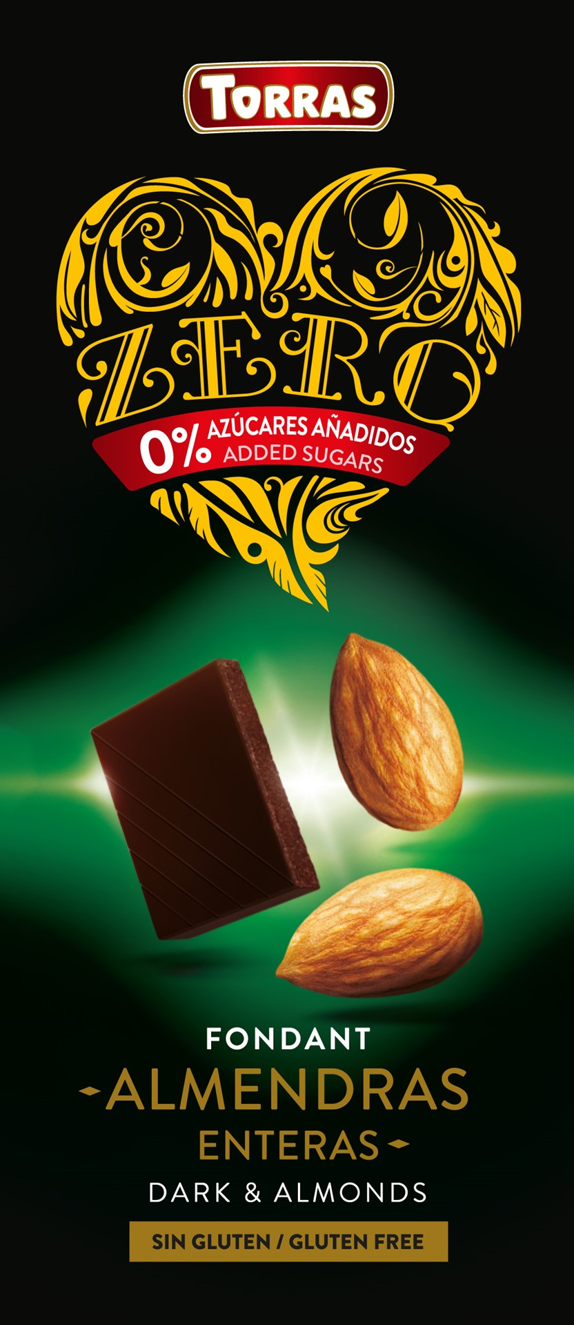 Czekolada gorzka 72% kakao z całymi migdałami bez dodatku cukru.