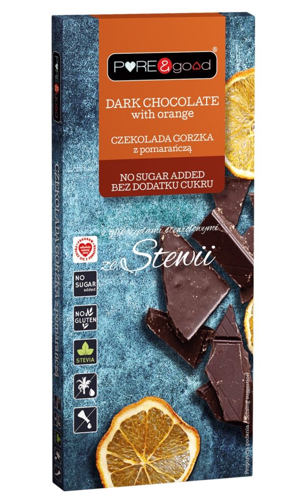 Czekolada gorzka z pomarańczą z erytrytolem i glikozydami stewiolowymi bez dodatku cukru
