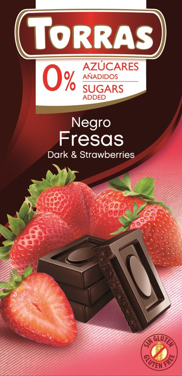 Czekolada gorzka z truskawkami bez dodatku cukru.