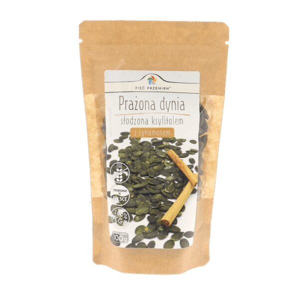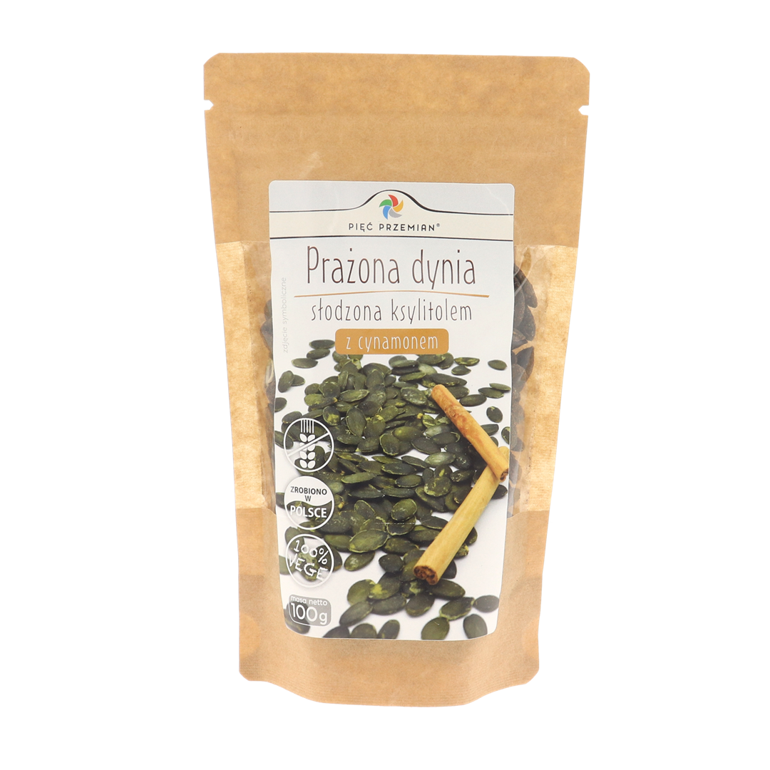 Prażona dynia słodzona ksylitolem z cynamonem 100 g – Pięć Przemian