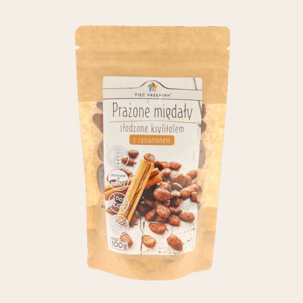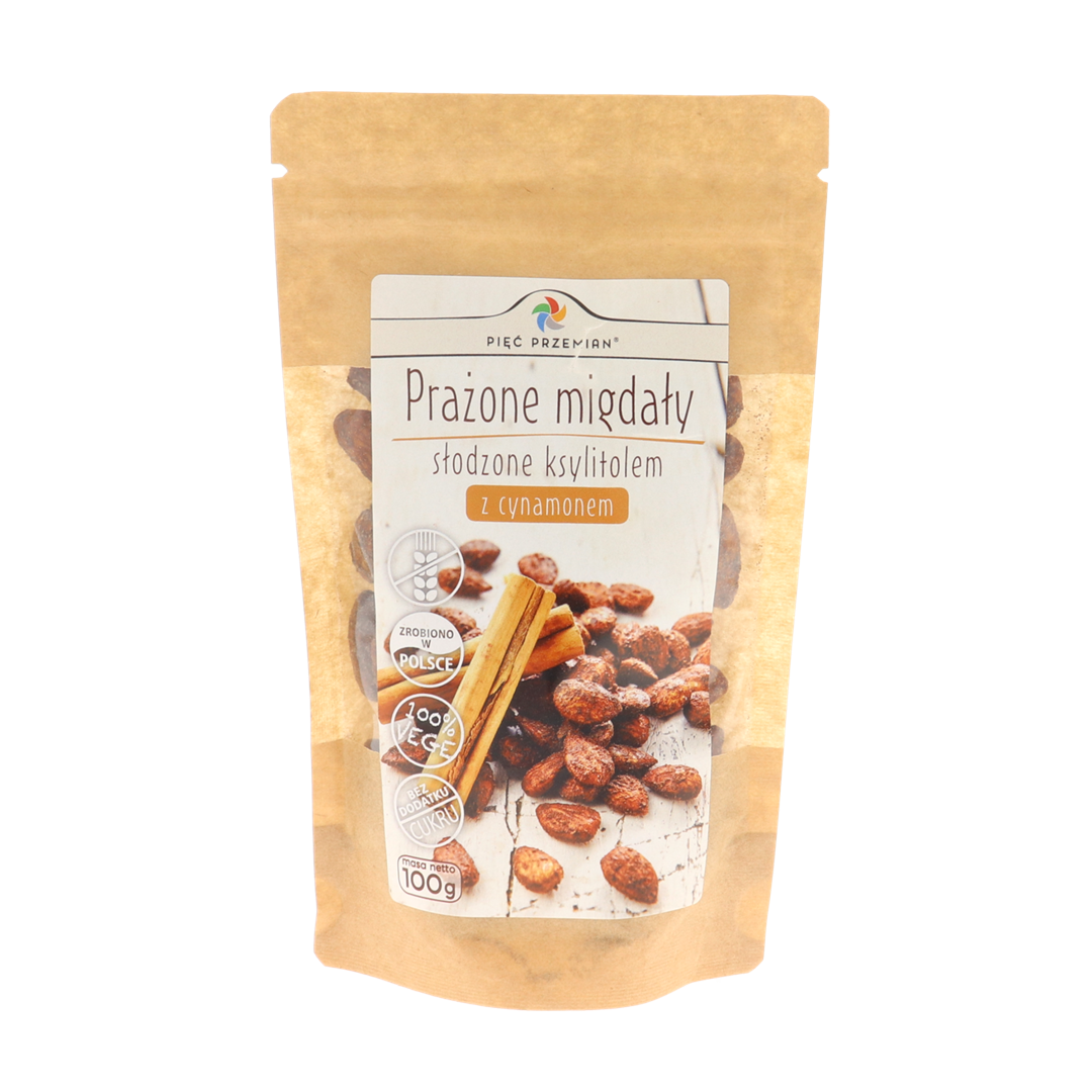 Prażone migdały z ksylitolem i cynamonem 100 g – Pięć Przemian